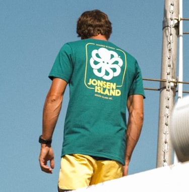 The story of Jonsen Island begins in 2008 in Oceanside, Southern California. Thomas Cantoni discovered a worn-out sticker on an old surfboard that read: